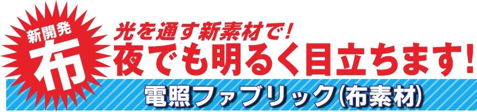 新開発電照ファブリックの特徴布製で電照LEDライトの光を透過させる素材です、テキヤ屋台・露店屋台用の水引のれんとして夜間の使用に最適です。印刷方法は昇華プリントなので従来のターポリン素材など洗濯できない油汚れも簡単に洗濯する事ができます。素材が布製品ですので折り畳んで持ち運びも簡単です。