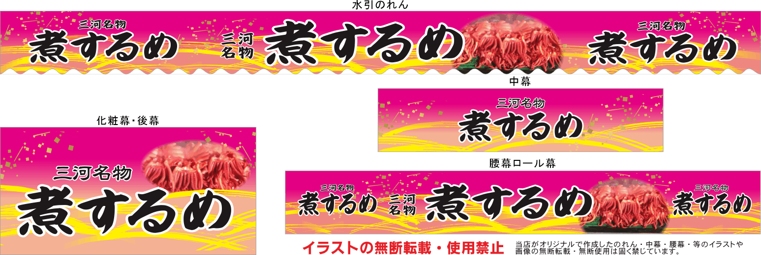 屋台のれんのサイズや枚数、中幕、後幕、腰幕など、詳細をご入力の上、お問い合わせください。